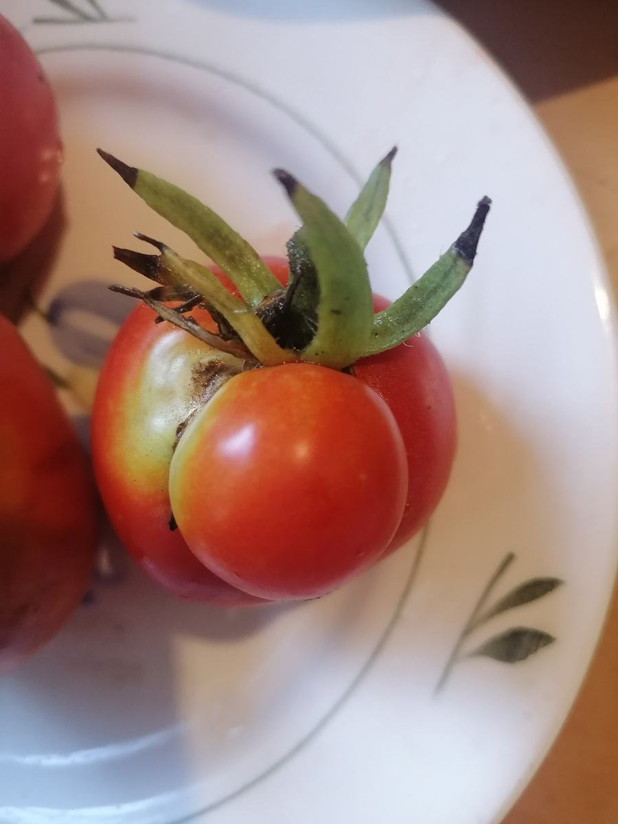 Как то в этом году плохо росли помидоры, наверное устала земля и надо бы ее чем-то сдобрить. Но один помидор вырос и наверное уже подавал знаки, что сдобри. Мне похож на тыкву из мультика "Чиполино"