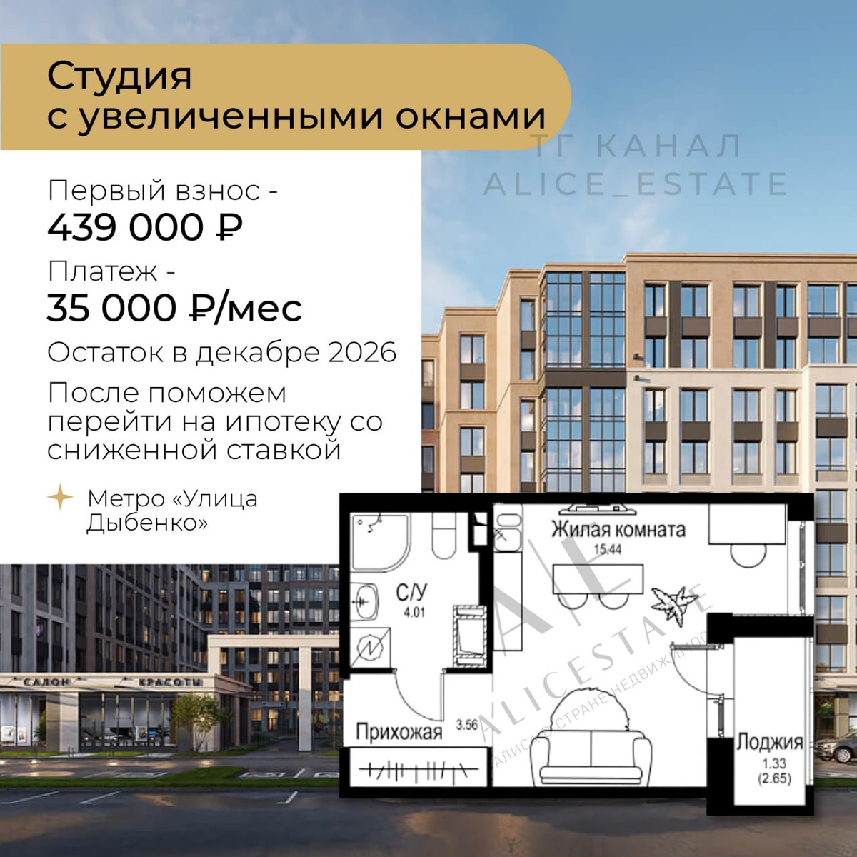🔥 Своя квартира в Питере за 439 000 ₽ Рассрочка с минимальным первым взносом позволяет всем, кто не подходит под льготную ипотеку, взять квартиру «здесь и сейчас» без переплат и с комфортным платежом. 📍Локация: метро «Улица Дыбенко» - 10 минут езды ▪️15 минут пешком - рестораны, фитнес, ТЦ ▪️удобный выезд на КАД в нескольких минутах Жилой комплекс высотой до 9 этажей с безбарьерной средой и уютными холлами с дизайнерской отделкой и колясочными. Доступ в парадные со стороны двора, а со стороны улицы находятся магазины и кафе. ➡️ увеличенные окна и потолки высотой 3 метра ➡️ коворкинг для удаленной работы ➡️ школа и несколько детских садов на территории Понравилась квартира или условия? Подписывайтесь и ставьте ➕ для бесплатной консультации 💙