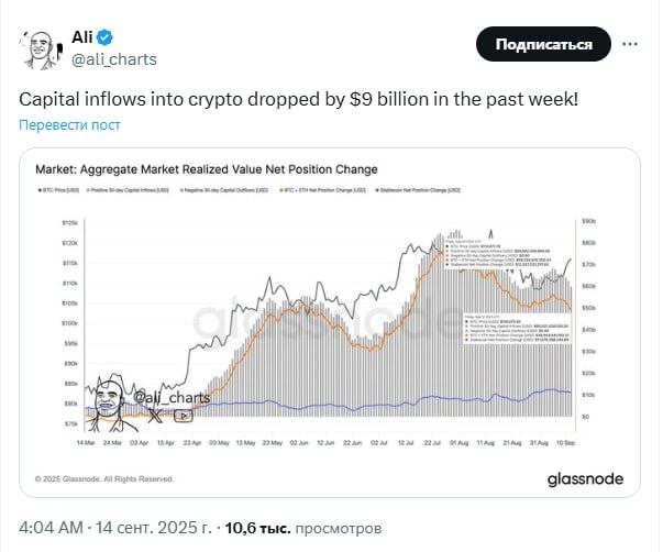 Приток капитала в криптовалюты сократился на $9 млрд за последнюю неделю!