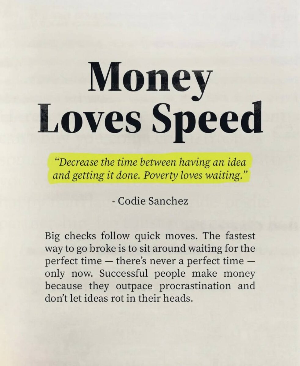 Тот, кто постоянно ждёт, упускает. Тот, кто делает быстро, забирает. Успешные люди не потому богаты, что у них идеи лучше — а потому что они не дают этим идеям сгнить в голове.