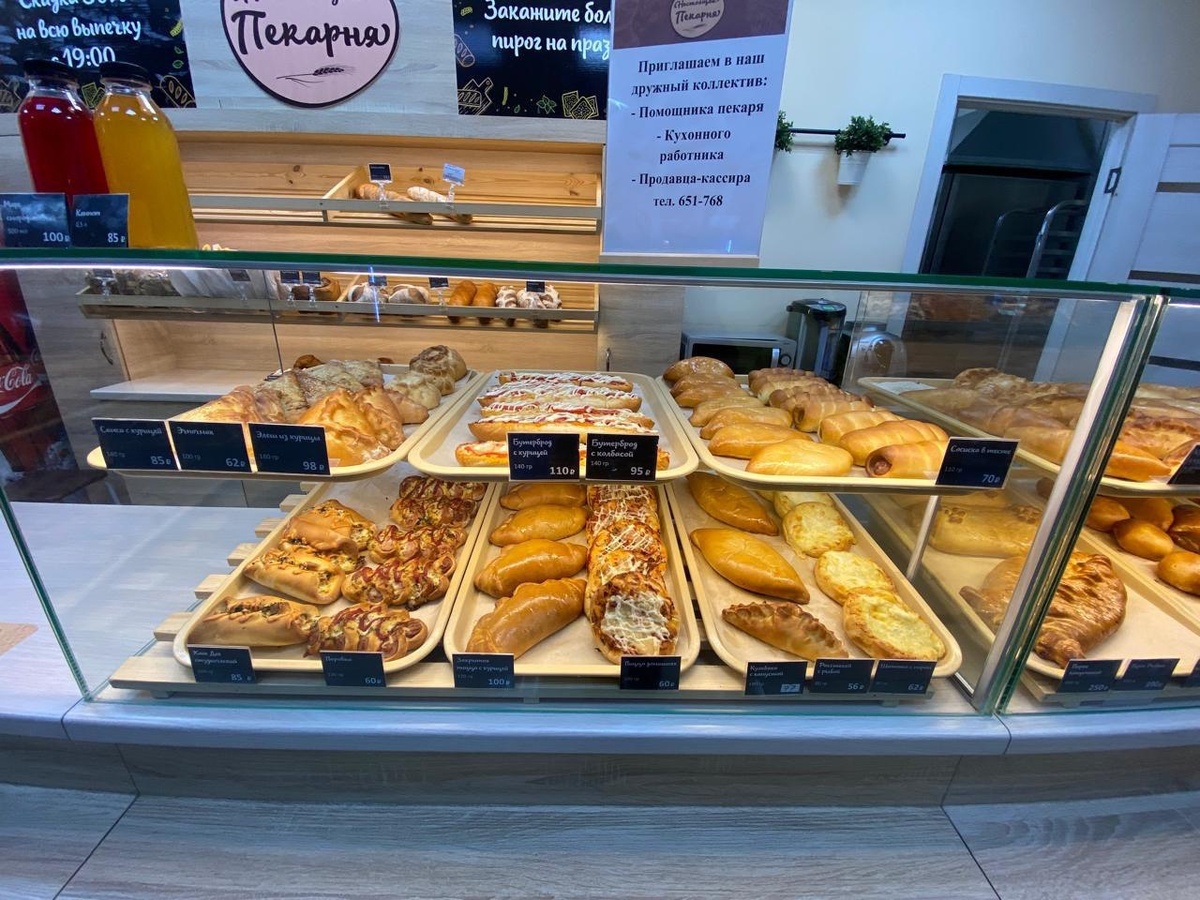 Что я могу сказать по этой витрине. Наличие сложного в изготовлении пирога в виде рыбы сразу сигнализирует мне, что выручка здесь не высокая. При интенсивном трафике, при выручке от 3 млн. руб. не реально делать сложные изделия.