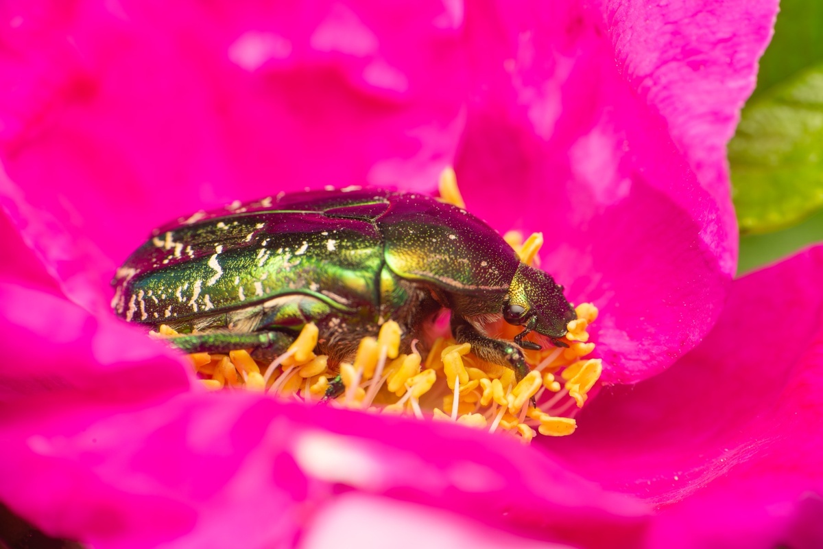 Многие дачники знакомы с бронзовками, довольно крупными жуками с ярким, будто бы металлическим, панцирем. Но садоводы и огородники, как правило, стараются уничтожить этих красивых жуков при помощи химии или собирая их вручную, потому что они считаются вредителями. Сегодня мы расскажем об осах, которые охотятся на бронзовок. Бронзовки – довольно многочисленное подсемейство жуков, насчитывающее тысячи видов. И практически все эти насекомые во взрослой стадии питаются цветками различных растений. Таким образом они повреждают завязи плодовых деревьев, угрожая оставить дачников без урожая. Также жуки поедают созревшие сладкие плоды. Кроме того, бронзовки уничтожают декоративные растения, такие как розы, шиповники и многие другие. Бронзовка медная При этом бронзовки встречаются довольно часто практически на всей территории России, за исключением самых северных регионов. Всего в фауне нашей страны насчитывают 33 вида из этого подсемейства. Особенно вредной считается бронзовка вонючая, или оле