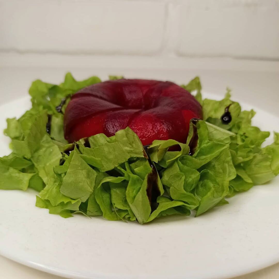 Завершаем выходные не просто салатом, а произведением искусства! Представьте: сочная свекла, нежный творожный сыр, хрустящие листья салата и сладковато-кислый бальзамический крем. А теперь — вуаля! — всё это превращается в яркий, круглый «пончик», который вызывает восторг даже у тех, кто обычно равнодушен к зелени. Этот салат я готовлю, когда хочу удивить без лишних усилий. И знаете что? Он всегда исчезает со стола первым!