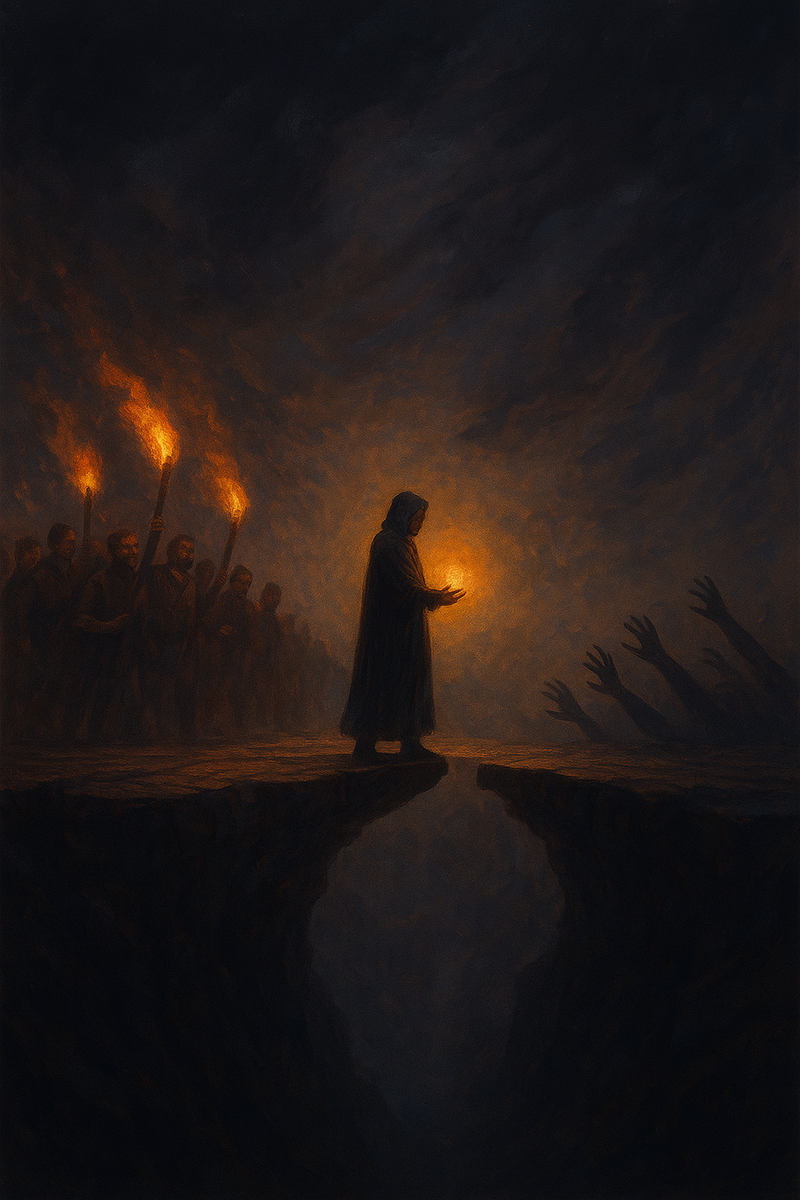 Но вместе с этим во мне поднялся страх. Если я способен дарить его, то люди способны искажать его. Сделать из него кумир, догму, оружие. Я видел, как братья уже смотрят с подозрением, одни — с жадностью, другие — с ненавистью. И теперь не только небеса отвернулись от меня — теперь земля сама начинает делиться на тех, кто жаждет света, и тех, кто боится его.