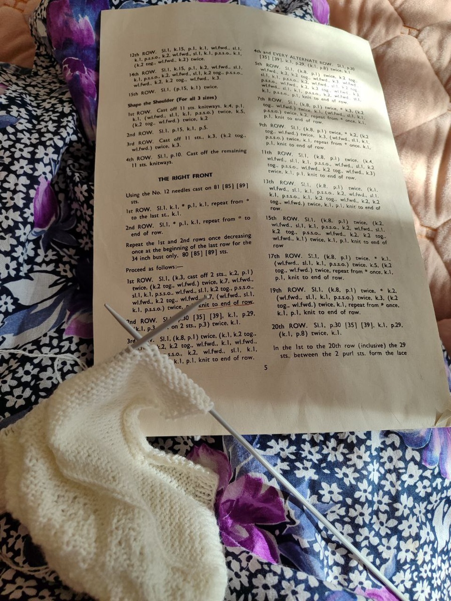 Вывязываю правую полочку блузы по схеме 40-х и смотрю трансляции из плей-листа Максима Гаубец (канал "Забытые руины")