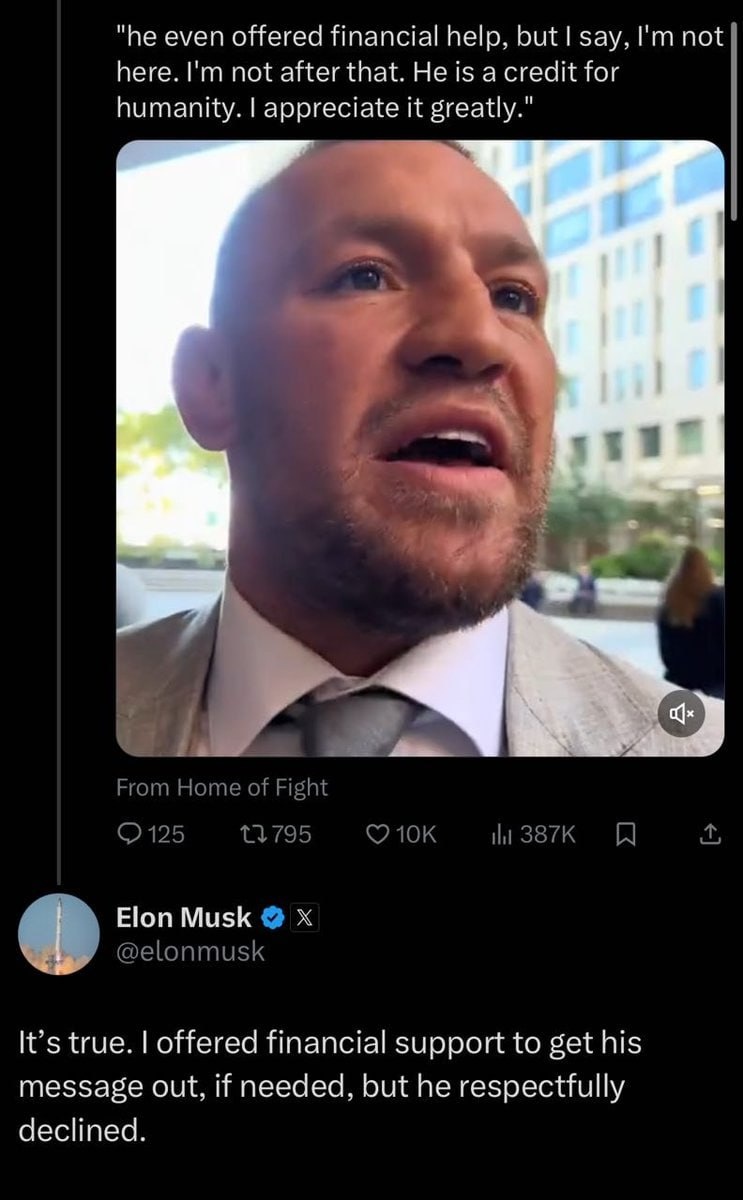 Musk offered to bankroll Conor as bids for presidency