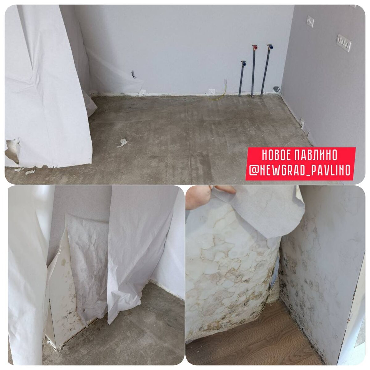 Сюрпризы от застройщика не заканчиваются «Ребята, кто-то просил фото внутренней отделки — делюсь 😱 Свежие обои наклеены вторым слоем поверх старых, на которых была плесень. Стены — в плесени, полы — сырые. В углах можно пальцем продавить стяжку.» ⚠️НОВОЕ ПАВЛИНО 🆕🆕🆕🆕🆕🆕 Прислать новость|Подписаться ❤️