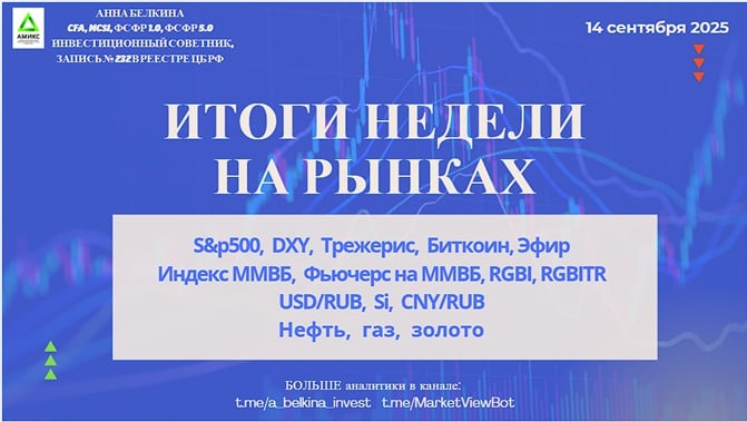#video Приглашаю на просмотр видео! Тема – Итоги торговой недели на рынках – 14 сентября 2025. В Обзорном видео посмотрим на американский рынок #SP500, индекс доллара #DXY и доходности на 10-летние Трежерис #US10Y. Посмотрим на изменения на российском фондовом рынке – индекс #RGBI И #RGBITR, индекс ММВБ #IRUS, фьючерс на индекс ММВБ - #MICEX; валютные пары #USDRUB, #CNYRUB, фьючерс на доллар-рубль #Si. Посмотрим на сырьевые товары – нефть #Brent, газ #Gas, золото #Gold. Движение на крипте через Биткоин #BTC и эфир #ETH. YouTube | Rutube | VK Видео | Дзен Не является ИИР 💪 БОЛЬШЕ разметок в Закрытом канале: Бот Закрытого Канала (подписаться из-за границы, пишите личным сообщением