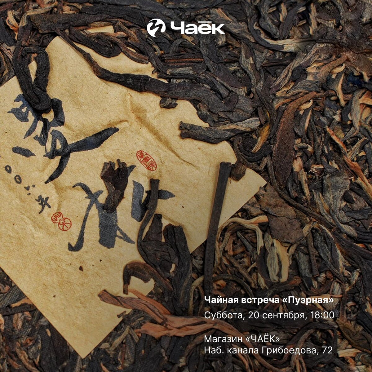 🍵 Чайная встреча 20 сентября 1. «Пуэрная» Погружаемся в мир пуэров и познаём принципиальную разницу между чёрными и зелёными пуэрами! На встрече продегустируем различные подвиды, чтобы наглядно прочувствовать широкий спектр вкуса пуэров. Мероприятие подходит как для новичков, так и для желающих ближе познакомиться с этими сортами. 📅 Суббота, 20 сентября, 18:00 👤 Юля 💵 900 ₽ 2. «Тет-а-тет» Вы можете записаться на индивидуальную чайную встречу, выбрав удобное для себя время, количество гостей и свою тему для мероприятия. 📅 Любой день 💵 от 3 500 ₽ 👉 Записаться Место встречи: магазин ЧАЁК. Правила посещения и записи. #встреча@chaekshop