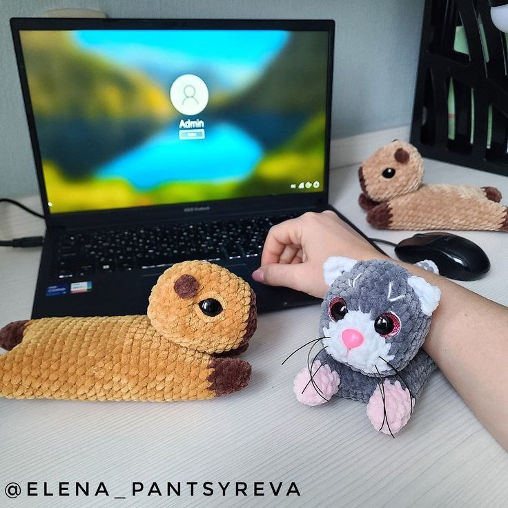 Подушечки для запястья при работе на компьютере. Я даже покупала коврик с подобной подушечкой, а здесь такая шикарная идея. Можно связать из любой пряжи (лучше из мягкой синтетики) и набить холлофайбером.