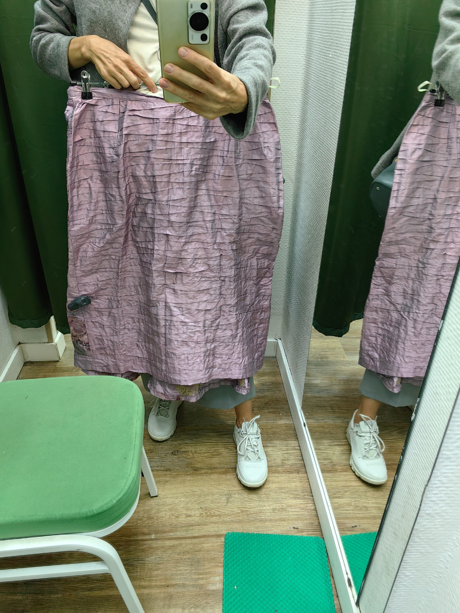 Первая и моя самая любимая - юбка из натурального шелка очень красивого лавандового цвета с вышивкой от Поль Вассер. Когда я ее увидела, сразу поняла, что это что-то хорошее, хотя бренд был мне не знаком.