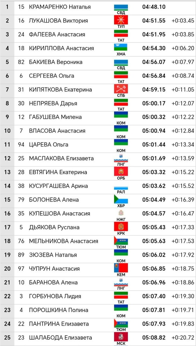 📍 ЦЛС "Малиновка" Спринт 1,9км КЛ. Женщины Результаты квалификации удивили не сильно. Еще в прошлом сезоне стало понятно, что предварительные гонки часто будет выигрывать Наталья Крамаренко, особенно такие тяжелые рабочие дистанции. Но также на ожидаемо, что уже в контактных гонках её преимущество уже не будет столь ощутимым. Среди лидеров квалификации традиционно Анастасия Кириллова и, конечно, королева нашего спринта Анастасия Фалеева. Высоко по итогам квала Виктория Лукашова, хотя это явление скорее эпизодическое, ведь она победительница всего и вся именно в лыжероллерах. Нельзя не отметить не самый высокий результат Алёны Барановой, тут же дело в последствиях болезни и на четвертьфинал она не вышла. На старт квалификации не вышли Юлия Ступак, Татьяна Сорина и Наталья Терентьева. Наталья решила сконцентрироваться на более длинных дистанциях на этом чемпионате. Мария Истомина еще не бежала из-за простуды, решили