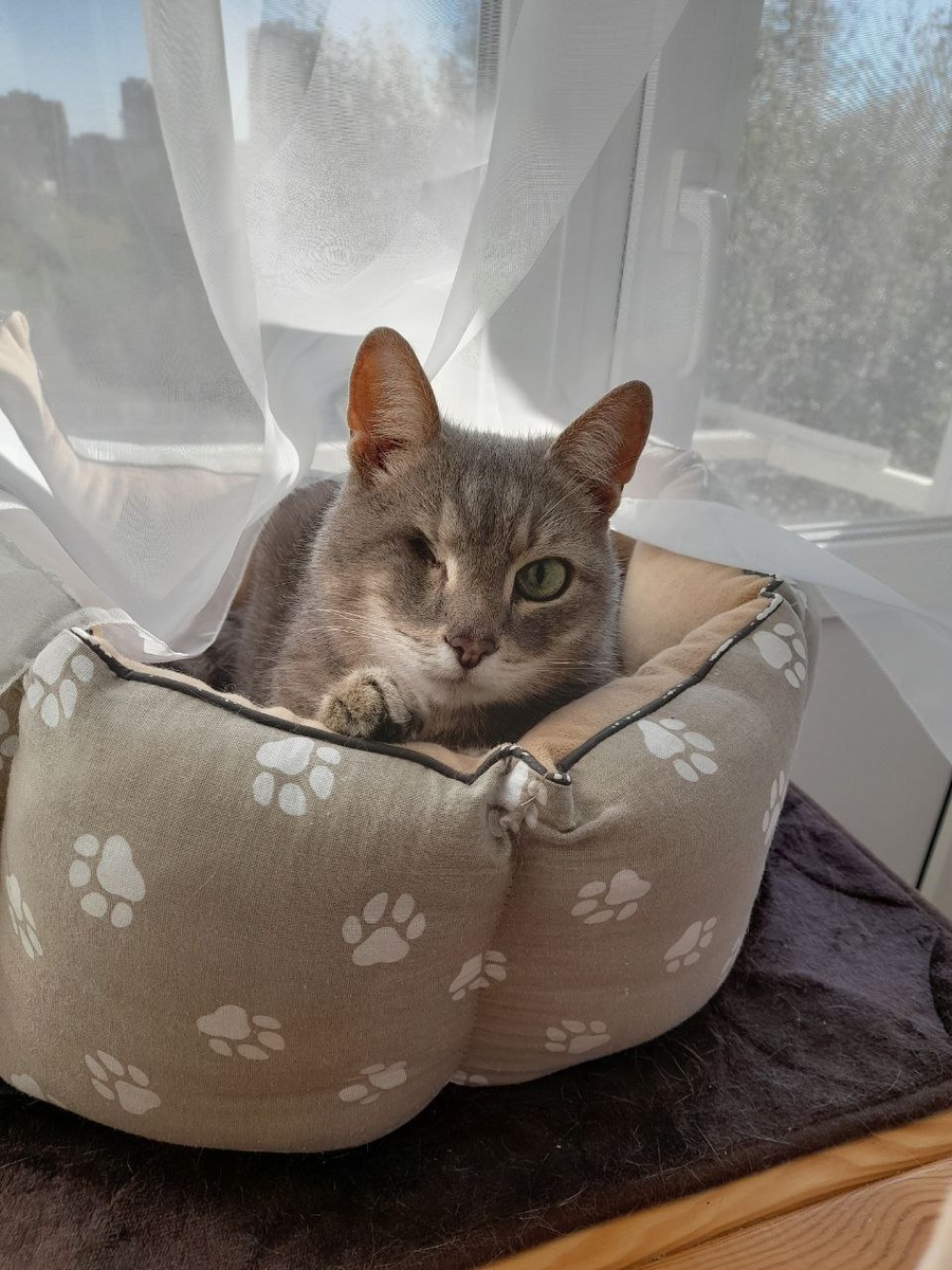 #муркотики_дома Семён повидал в жизни многое... В детстве выпал из окна, из-за травмы потерял глазик, а спустя 10 лет сытой домашней жизни лишился хозяев и оказался в приюте😢 Долго страдать малышу не пришлось, в июле он нашел свою новую семью! Вот что пишет новая хозяйка: "Добрый вечер! Передаю привет от Семёна 😄 У него все хорошо, уже немного отъел бока. К нам привык и теперь постоянно сидит на коленях и мурлычет (первое время боялся просто залезть на ноги). Носится, как котенок. Что ему 10 лет - ну никак не скажешь! Очень добрый и умный котик. Особая, правда, у него любовь к цветам, хотел попробовать все, что есть в доме. Все было спрятано и убрано, мало ли. Ни разу не напакостил. Даже ни одной царапки от него на руках нет, потому что играется очень аккуратно. В доме поселился маленький добрый пират😄 Спасибо вам большое за такое чудо 🧡" Счастливых становится больше!