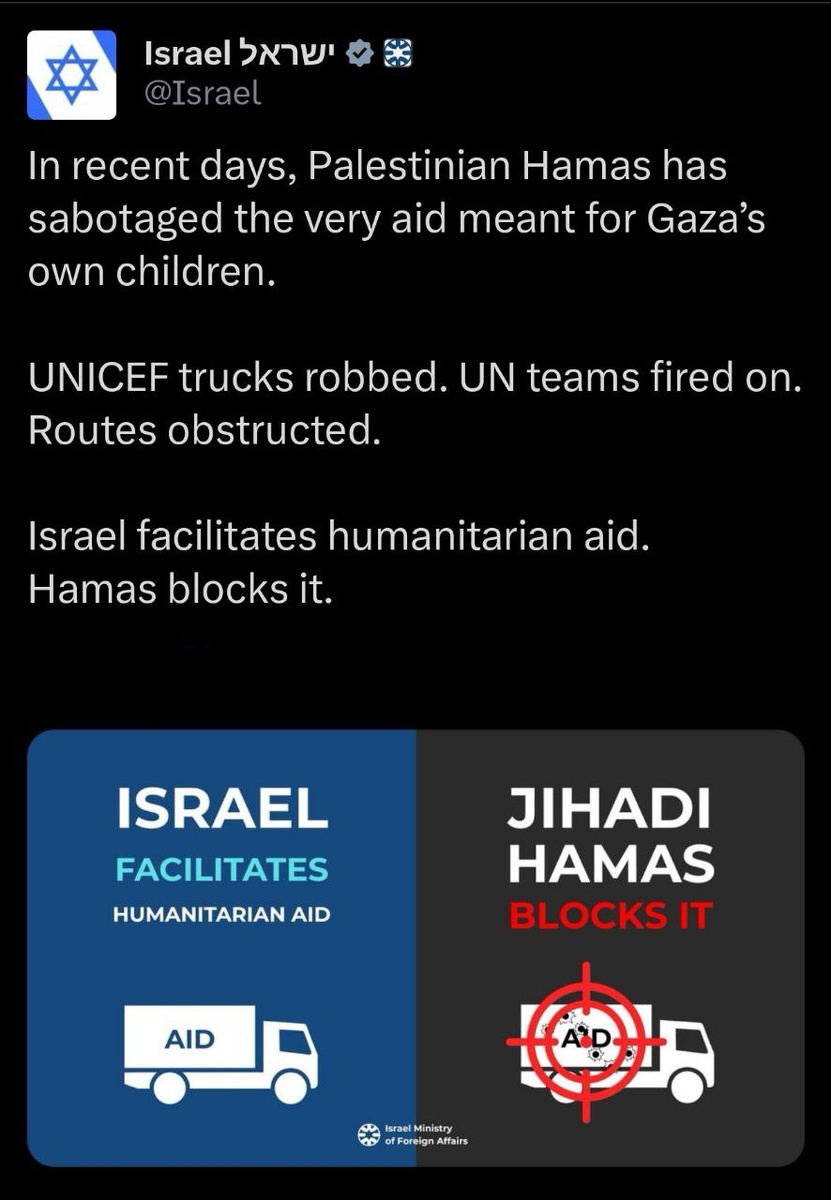 Insists 'Jihadi Hamas' firing on UN teams, robbing UNICEF trucks