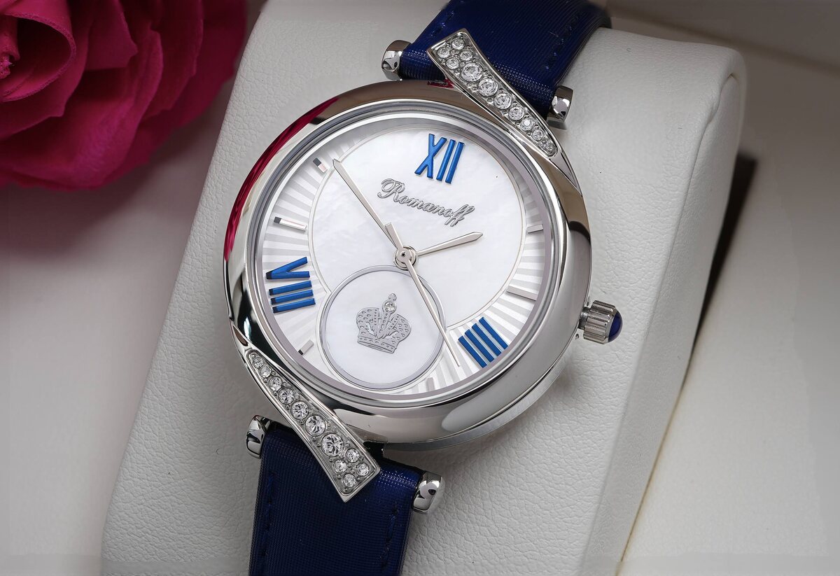 Перламутр притягивает, придаёт загадочности, подчёркивает утончённость женского образа. Циферблат украшает большая объемная корона, которую венчает бриллиант Swarovski.