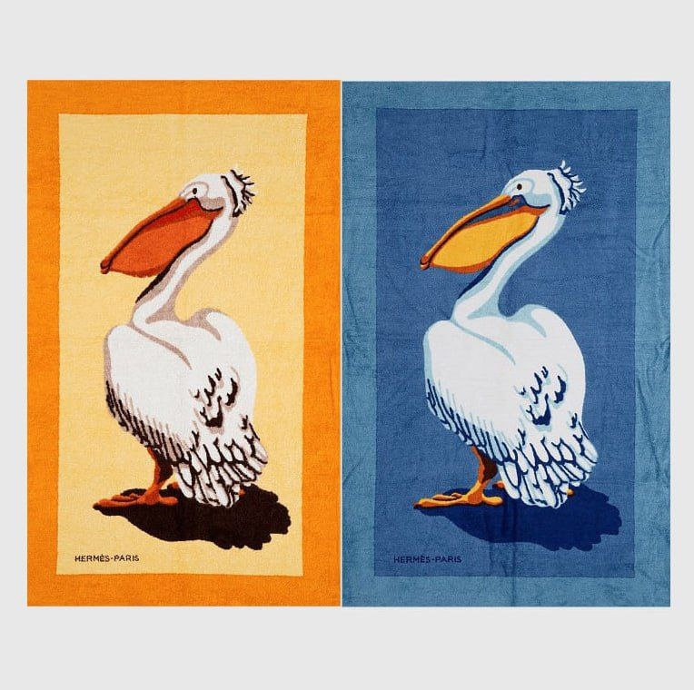 Главный художник Hermès Дмитрий Рыбальченко, который создаёт рисунки для шёлковых платков, поделился эскизом, благодаря которому получил работу в бренде. Эскизы отсматривал сам Жан Луи Дюма-Эрмес, глава Hermès на тот момент: «Он разложил на полу три моих принесённых рисунка для пляжных полотенец, сел на табуретку и рассматривал их. Потом встал и снова рассматривал, и всё это время молчал. Наконец поднял рисунок пеликана, вырезал птицу, сделал копию, протянул мне обрезок бумаги и попросить написать моё имя». Художник работает в Hermès 35 лет, а в отпуск теперь берёт с собой полотенце с архивным пеликанчиком.