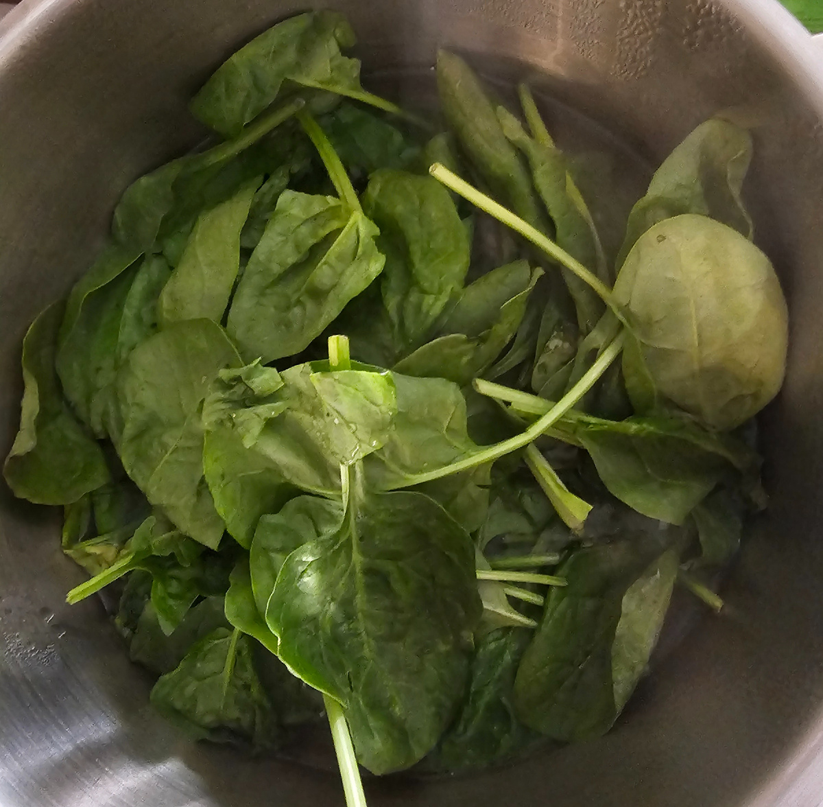 Шпинат нужно хорошо промыть и опустить в кипящую воду на 20-30 секунд.
