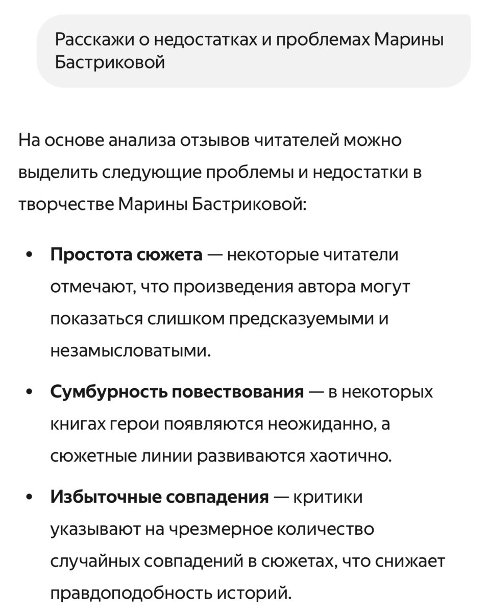 Решила спросить нейросеть о своих проблемах и недостатках)) Были проанализированы и мои посты-истории! Какой ещё вопрос задать нейросетке о Марине Бастриковой?)) __ #МаринаБастрикова_пишет #МаринаБастрикова_истории