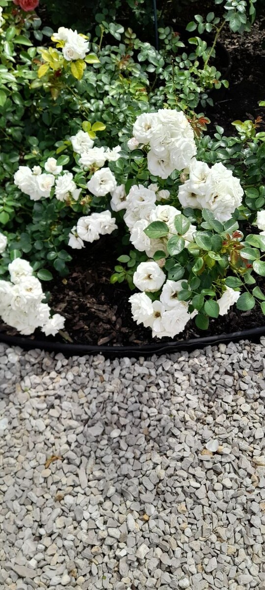 Добрый день! Сегодня следующая царица моего сада. 16 уже. Флорибунда Аспирин. У меня два куста этого сорта. Посажены в розарий "Свита английской розы" с двух сторон от розы Фишерман Френд. Цветет роза в две волны,с небольшим перерывом. Может и зацвести 3 раз до самых морозов. Вот так выглядит один куст. С другой стороны другой растет. Роза беспроблемная. Цветы держит долго и потом они осыпаются. Цветок мелкий 3-4см. Высота куста 70см ,а вот ширина огромная. Может вырасти до 2 метров. Я ее пытаюсь сдерживать обрезкой. Роза очень обильная,цветет кистями от 5 и боллее. В жаркую погоду цветы чисто белые. Все сливается белым ковром. А в прохладную погоду,особенно осенью,лепестки розовеют и она неотразима. Роза -подарок! Дождь ей в радость,зимует превосходно. При посадке учитывайте ее ширину. Ей надо больше места. Можно и как шраб выращивать к опоре. Сажайте эту красоту! С вами была Нина🥰