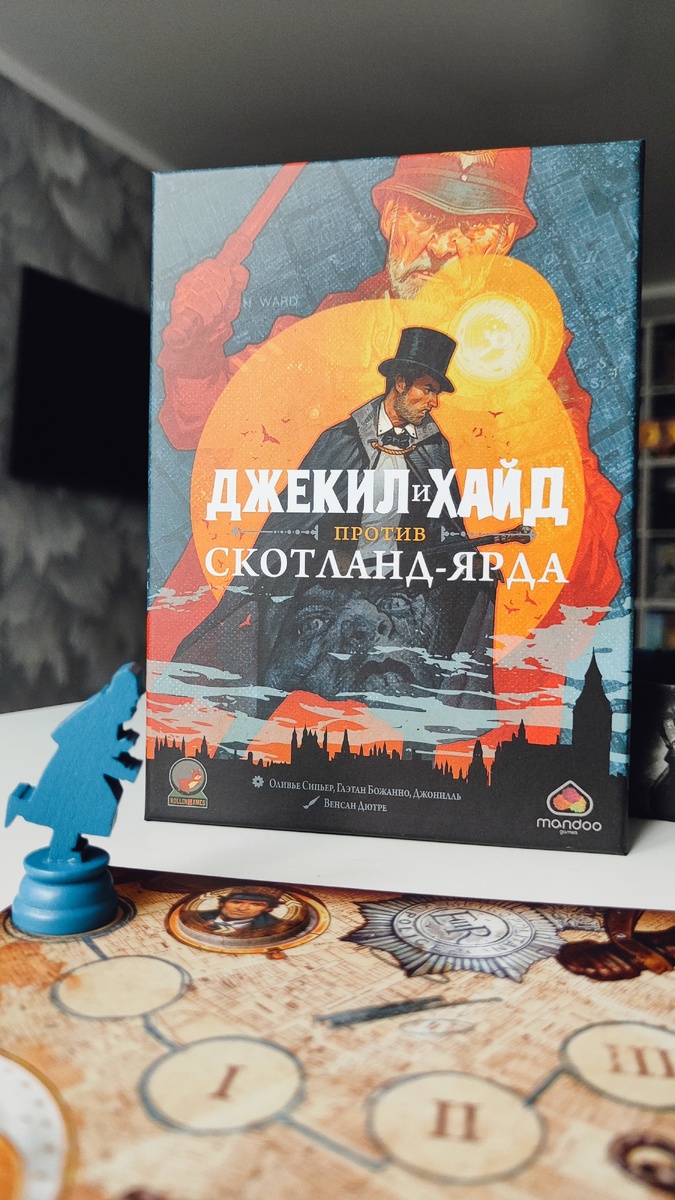 Последнее время меня начали интересовать игры на взятки, не знаю, откуда во мне взялся азарт, потому что обычно он спокойно спит, но почему-то новые игры его разбудили, и эта черта характера стала требовать новых ощущений. «Джекил и Хайд против Скотланд-Ярда» зацепила тем, что здесь два игрока не играют друг против друга, а объединяются против игры, которая подкидывает новые условия каждую главу. Сюжет добавляет перчинки и помогает окунуться в мрачную атмосферу и проблемы личности, которая изо всех сил старается удержать баланс между добром и злом.
