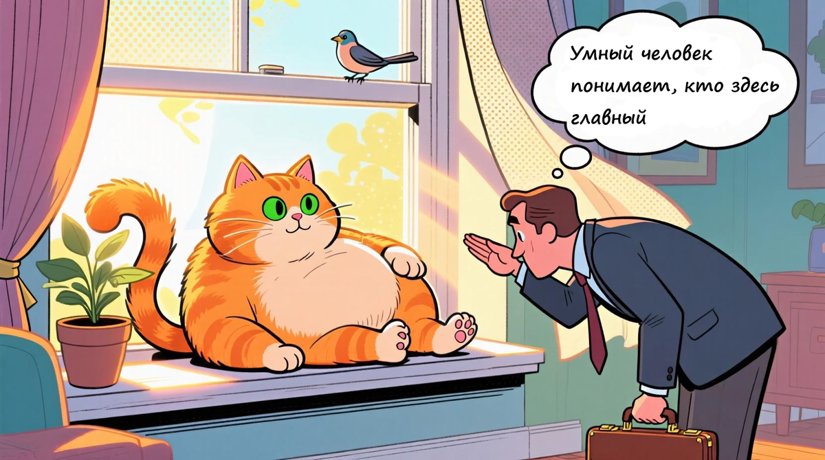 Мурка лежит на подоконнике и размышляет вслух: Соседка спрашивает: Кот Васька жалуется другу: Кошка звонит в зоомагазин: Утром в спальне: Кот серьезно смотрит на хозяйку: Ветеринар говорит хозяйке: Кот ведет дневник: "Понедельник. Хозяин снова пытался командовать мной. Пришлось напомнить ему о субординации - опрокинул его утренний кофе на важные бумаги. Он быстро понял, кто здесь главный. Вторник. Прогресс налицо. Теперь он сам встает в пять утра кормить меня. Дрессировка проходит успешно." Разговор двух котов у подъезда: Хозяйка спрашивает у кота: Кот задумчиво: Кот приходит к психологу: Диалог на кухне: Встречаются два хозяина кошек: Кошка жалуется подруге: Ещё больше советов о кошках делюсь в своём Telegram-канале. Там пишу коротко и по делу - экспресс-советы, ответы на вопросы, интересные случаи из практики. Подписывайтесь, если хотите быть в курсе
