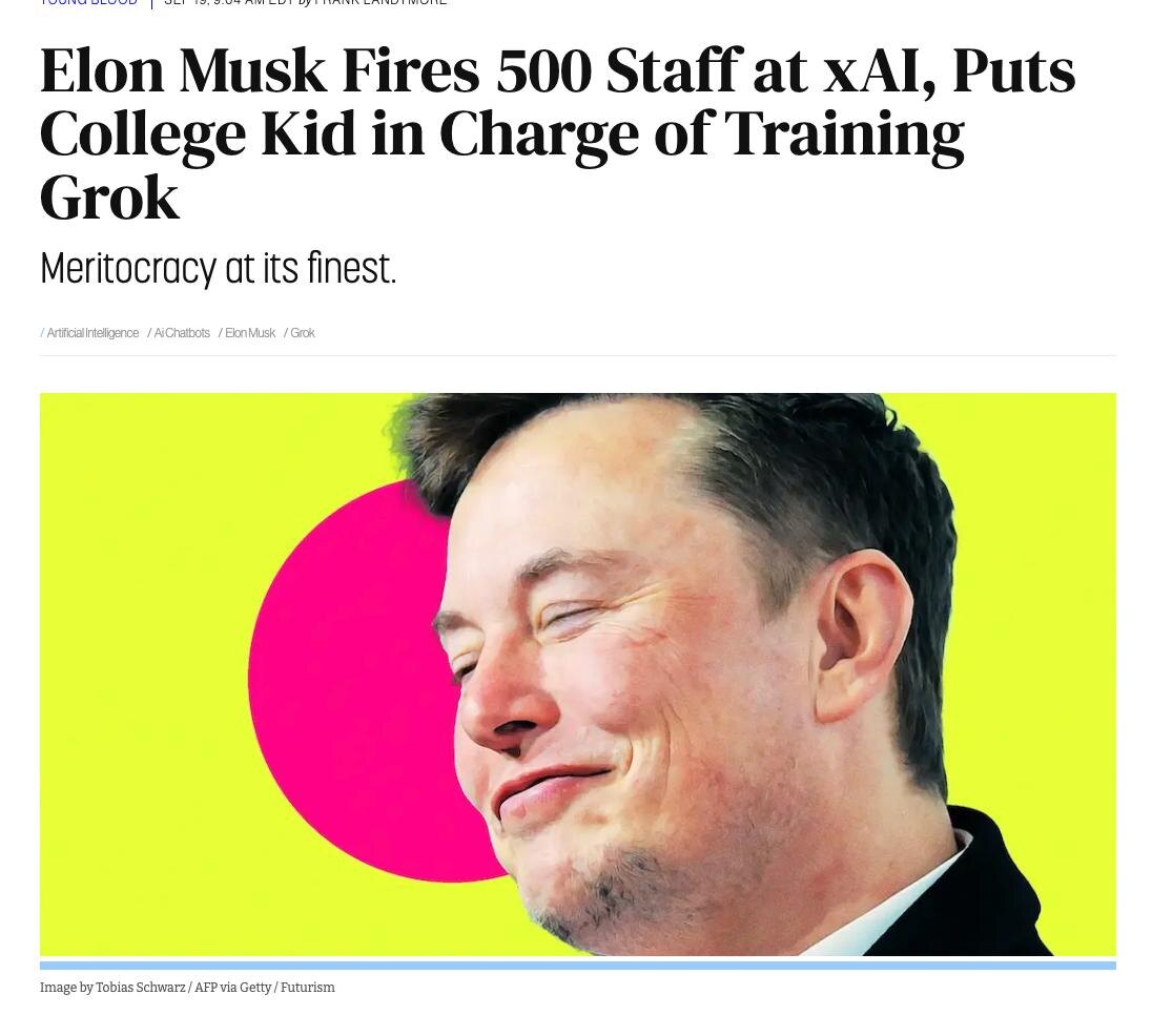 Илон Маск назначил 20-летнего Диего Пазини руководить одной из команд разработки Grok. Через несколько недель он уволил 600 сотрудников. Пазини начал устраивать очень интересные тесты, например — по мемам, и требовал от каждого доказать свою необходимость. Когда несколько сотрудников спросили, кто он такой и как оказался в компании, их тоже уволили. @lobushkin