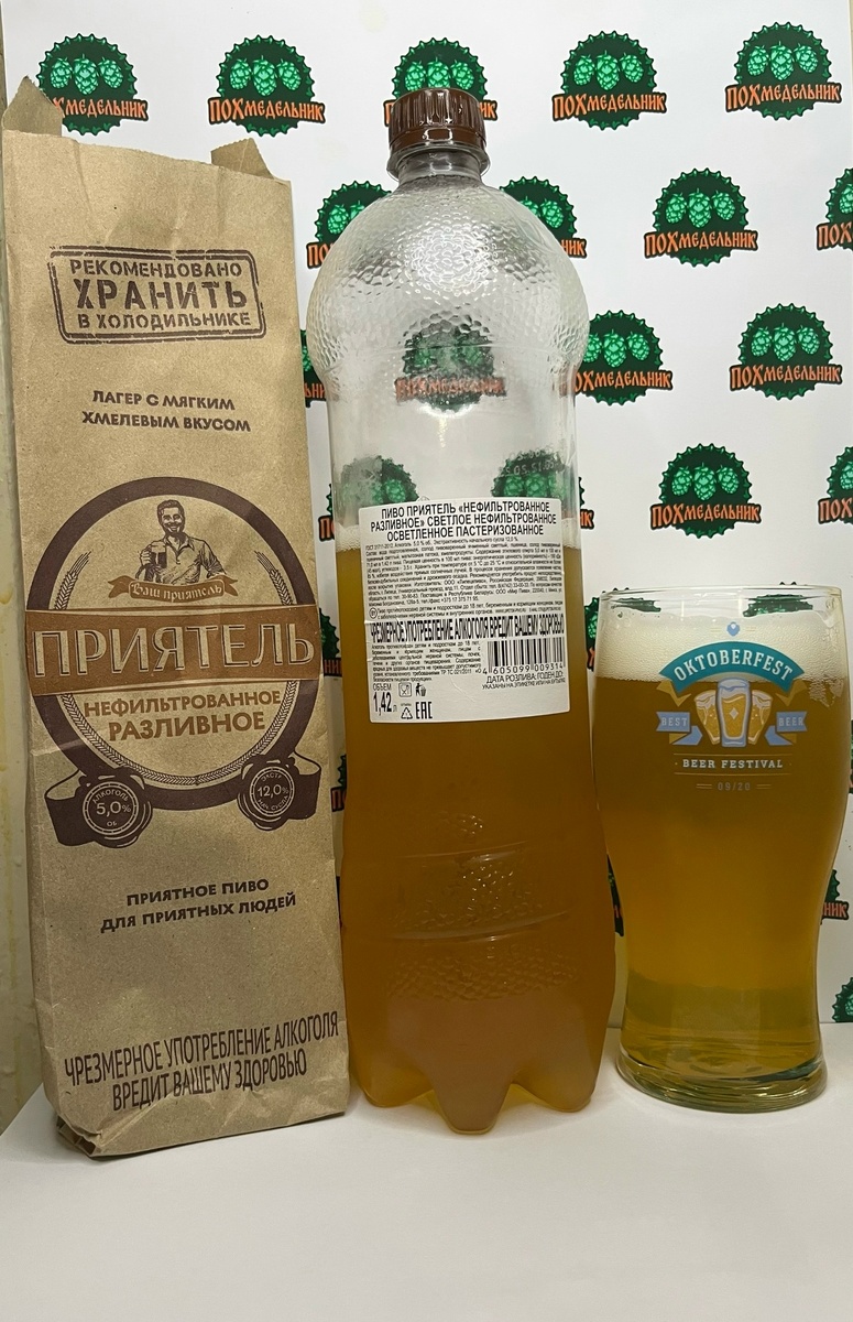 Статистика: пиво светлое нефильтрованное осветленное пастеризованное, алкоголь - 5.0% об., экстрактивность начального сусла - 12.0%, состав: вода подготовленная, солод пивоваренный ячменный светлый, пшеница, солод пивоваренный пшеничный светлый, мальтозная патока, хмелепродукты. Объём: 1,42 л Дата розлива: 22.08.2025 Изготовитель: ООО «Липецкпиво», Россия, Липецкая область, г. Липецк По-братски: узрел в магазине, что у пива линейки «Приятель» изменился дизайн. А это, как вы знаете повод для того, чтобы перепробовать это пиво. Что я собственно и сделал. Кто-то может скажет, мол зачем, пил же уже, надо что-то новое пробовать. А я скажу так, что пиво одинаковым никогда не бывает, даже если варят его давно и из одного и того же сырья. Хотя и сырье всегда разное. Да и время в котором мы живем очень сильно влияет. Простой аромат просто пива, хорошая пенная шапка, во вкусе легкие хмелевые нотки, хорошее солодовое тело, отличная газация. Обычное простое пиво, пьется легко, а под закуску даже