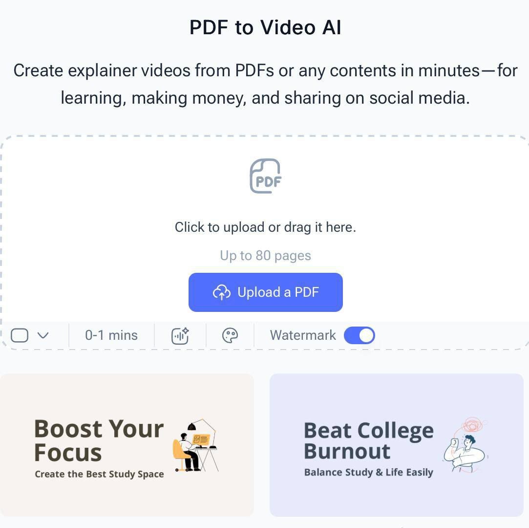 🔥ТВОЙ PDF СТАЛ ВИДЕО?🔥 Ты заливаешь в чат 80-страничный отчёт по маркетингу, который писался три недели? 🤯 Теперь представь: ты нажимаешь “Загрузить”, и через 90 секунд — у тебя уже есть видео, где твой текст оживает. 🎤🛹 AI не просто читает — он переводит твою сухую статистику в динамичный ролик с анимацией, голосом, переходами и даже эмоциями. Да-да, твой график продаж теперь прыгает, как байкер на тротуаре. 📈💥 Загружай ПДФ из учебника, инструкции по сборке шкафа-купе или бухгалтерского отчёта — ИИ сделает из этого контент, который твои подписчики будут лайкать, пересылать и спрашивать: “Кто это сделал?!” Голос? Русский. Английский. Испанский. Китайский. Арабский. Даже если ты не знаешь, как произносится “Schrödinger’s cat” — ИИ скажет за тебя. 🐱🔊 Нет регистрации. Нет карты. Нет “бесплатная пробная версия до завтра”. Это как найти в кармане 5000 рублей — и понять, что они были там всё время. ПОЧЕМУ ЭТО КРУТО? Потому что ты больше не ходишь по офису с флешкой, говоря “это я сд