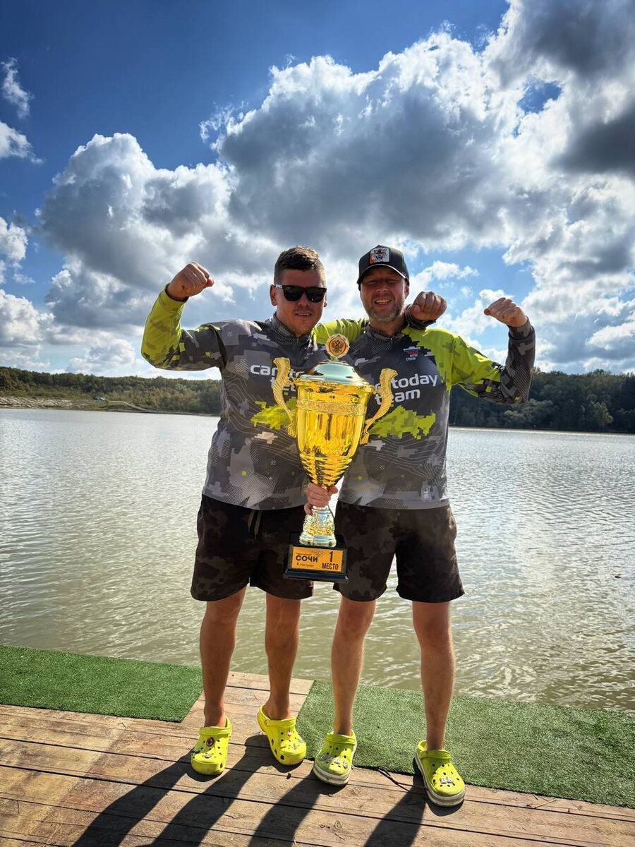 Давно не держали такого тяжелого кубка в руках! Развязка конечно была эпичная… За час до финиша нас скидывают на второе место, с отставанием в 6 кг от первого. Смотрю на Саню и о мне говорит: «Они (соперники) еще тянут рыбу»! А значит разрыв будет еще больше. И тут наш сектор взрывается. Сначала дуплет, и следом триплет. За час мы ловим 6 рыб и возвращаем себе первую строчку в протоколе! Спасибо Администрации водоема, судейской бригаде и конечно же организаторам турнира! Все было на очень высоком уровне Водоем интересный и конечно же со своей спецификой. Теперь длинная дорога домой… Ну и самое главное! Спасибо всем, кто нас поддерживал. Мы это ценим. Вы лучшие! Киты рулят 🐳