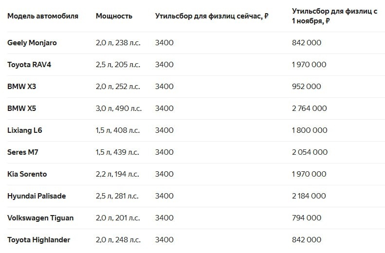 Утильсбор для физлиц на иномарки сильно вырастет с 1 ноября: теперь он будет зависеть не только от объема, но и от мощности двигателя.