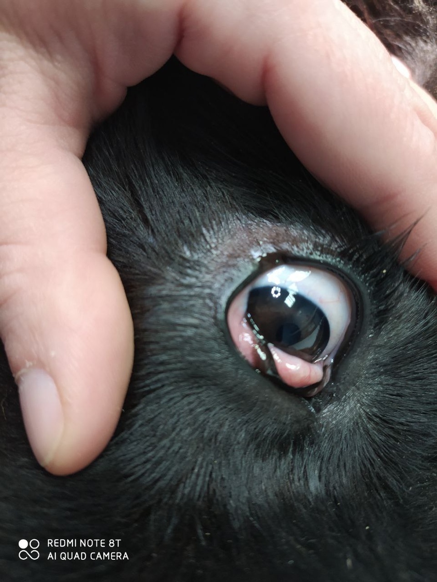Пролапс слёзной железы третьего века («вишневый глаз»). Слёзная железа выпадает из своего нормального положения и становится видна как округлое, красное образование во внутреннем углу глаза. Чаще всего это генетически обусловленная проблема у молодых собак некоторых пород (бульдоги, мопсы, бигли, кокер-спаниели, шарпеи).