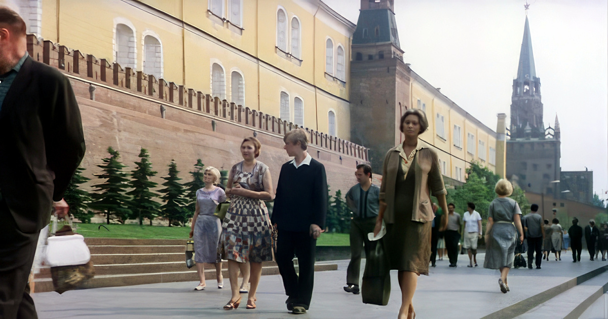 Перед нами Москва 1969 года. И по этой Москве ходит в поисках мужа простая итальянская женщина Джованна. Мировая суперзвезда София Лорен в своей простой итальянской одежде особо и не выделяется среди советских людей. Вот она с дорожной сумкой идёт по Красной площади. Смугленькая такая, народ на неё и не оборачивается, наверное, какая-то узбечка из Ташкента.