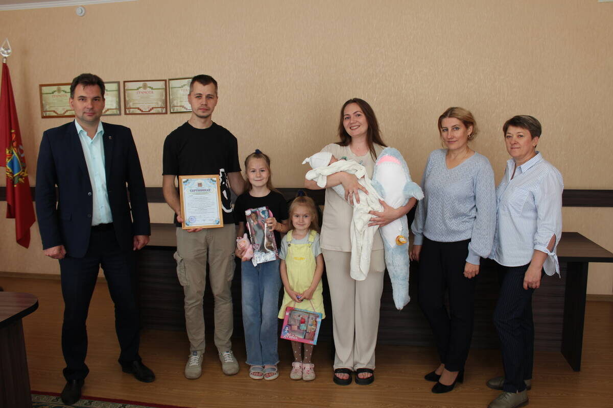 В рамках праздничных мероприятий, посвященных 82-ой годовщине освобождения Брянской области от немецко-фашистских захватчиков, в администрации Суземского района состоялась торжественная церемония вручения сертификата на областной материнский капитал. Счастливыми обладателями финансового документа стала многодетная семья Сугаковых. Глава администрации Суземского района Андрей Матросов вручил сертификат главе семейства Максиму Сугакову и его супруге Елене. В мероприятии также приняли участие их дети: дочери Полина и Женя, а также самый маленький член семьи - Михаил. Им были подарены игрушки. - Пусть этот важный документ станет символом заботы государства о вашей семье и поддержкой ваших планов на будущее. Желаю вам счастья, здоровья, благополучия и радости каждого дня вместе с вашими детьми. Пусть ваши мечты сбываются, дети растут счастливыми и успешными, а семейное тепло согревает вас долгие годы! - отметил Андрей Матросов, обращаясь к виновникам торжества. Со столь значимым событием мн