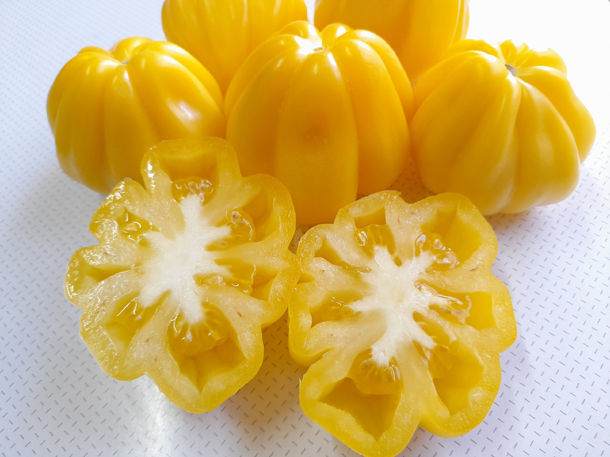 ❤НОВИНКА СЕЗОНА❤ Томат "Инжир желтый" Фотосессию этого томата я долго откладывала, ну как то все было некогда, помидорки этого сорта выросли у меня огромные, по 600-700 грамм, очень красивые, прозрачные, светящиеся на солнце и я все думала, надо показать на фото его урожайность и красоту🥰 Но шло время, сортов у меня много и я просто о нем забыла, помидорки были проданы, съедены и когда я по своему журналу стала проверять, то оказалось что этот томат я не сфотографировала и семена не собрала😬Ведь я как делаю, сначала фото, потом сбор семян, все четко, все фиксируется в журнале, иначе никак с такими объемами. И какого же было мое отчаяние когда больших и красивых экземпляров у себя я не обнаружила, это просто разочарование этого сезона😭 Пошла в теплицу, помидорок на этом томате висело на верхнем ярусе много и все они не более 100 грамм😪😒 Пришлось для вас сфотографировать и собрать семена с того что осталось на кустиках, увы и ах.. Но даже в таком размере посмотрите на него😃сказочны