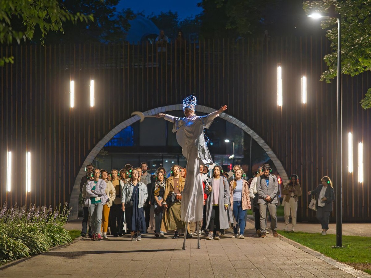 В честь знаменательной даты — 300-летия Воронежской губернии — 21 сентября горожане стали свидетелями необычного представления. Ночной спектакль - променад «Воронеж не про Воронеж» открыл зрителям совершенно новое видение родного города. Инновационный формат от ВАУ театра объединил в себе ночной аудиоспектакль и прогулку по городским улицам. Участники погрузились в атмосферу таинственности, надев наушники и отправившись в удивительное путешествие. Ожившая история города раскрывалась перед слушателями через звуки и голоса. Древние фасады зданий делились своими тайнами, а мостовая словно нашептывала старинные легенды. Актёры мастерски проводили зрителей сквозь временные порталы — от поэтических вечеров в сумрачных закоулках до торжественного марша кадетов минувших эпох. Волшебное путешествие сопровождал загадочный крылатый проводник. В этом необычном мире трамваи растворялись в ночной мгле, а звёзды загорались не на небосводе, а между строк повествования. Каждый участник становился част