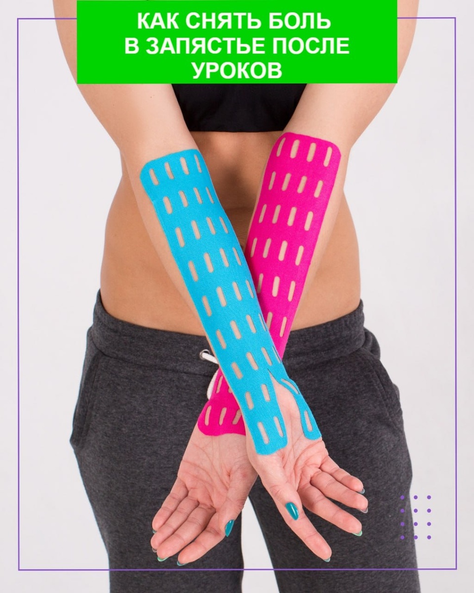 Учебный год только начался, а вы уже чувствуете, сколько всего навалилось?Сегодняшним постом поможем вам немного «разгрузиться». ✍️ Долгие уроки заканчиваются почти всегда одинаково — болью и усталостью в запястье. Знакомо? Особенно это актуально для школьников, музыкантов, художников и всех, кто много работает руками. Решение есть ➡️ кинезио тейпирование помогает снизить нагрузку, стабилизировать сустав и быстрее восстановить руку. 🔹 Схема при боли в запястье: 1️⃣ Возьмите 2 отрезка хлопкового кинезио тейпа BBTape шириной 5 см (от межпальцевого промежутка до локтя). 2️⃣ Сложите полоску вдвое и сделайте по центру два V-образных выреза под пальцы. 3️⃣ Разорвите бумажную подложку в середине тейпа, проденьте безымянный и средний пальцы в отверстия. 4️⃣ Наклоните кисть вперeд и приклейте тейп, затем отведите назад и зафиксируйте оставшуюся часть. 📌 Натяжение — 0%. 5️⃣ Для стабилизации оберните сустав ещe одним отрезком тейпа, закрепив его вокруг запястья. После такой аппликации луче