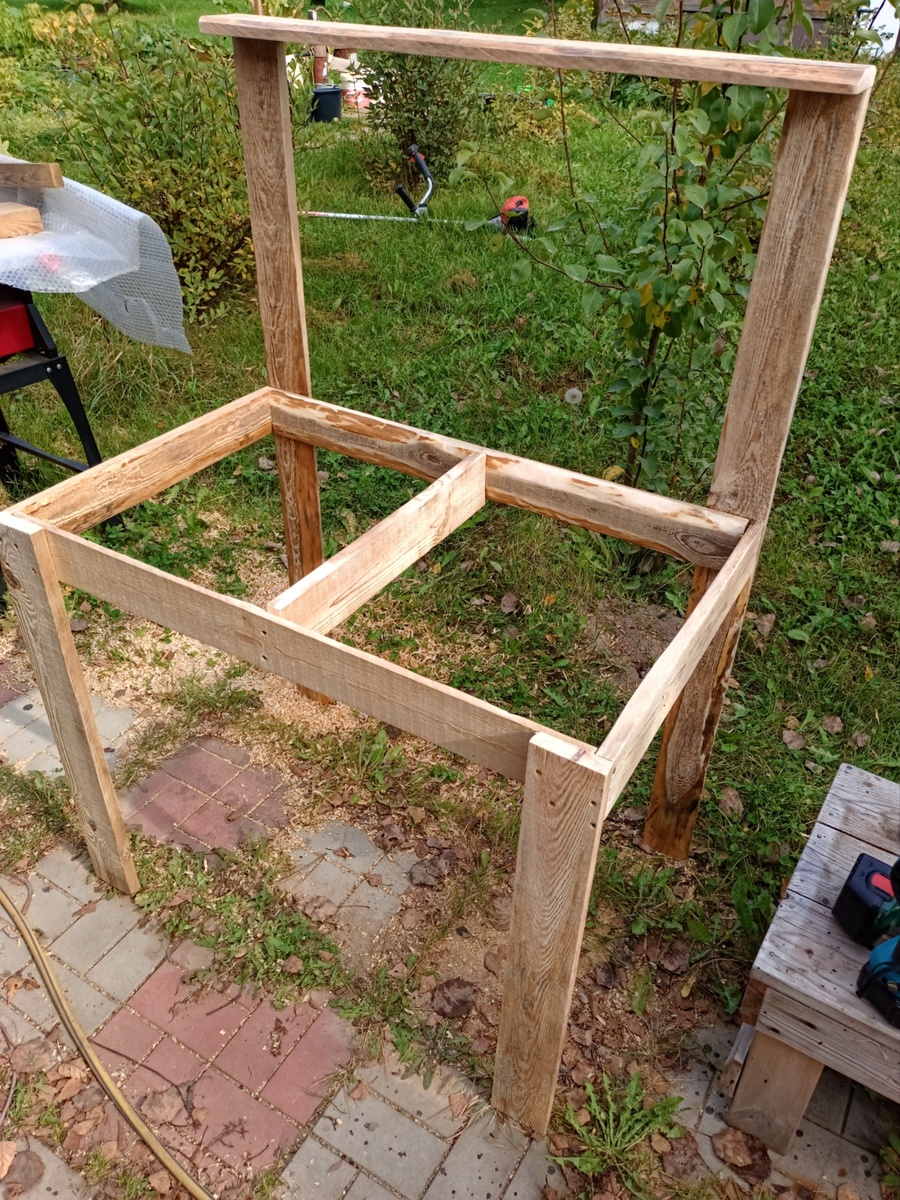 Напилил, собрал и получился каркас под столик. С задней стенкой. Размерами 100х60 при высоте 80 см до столешницы.