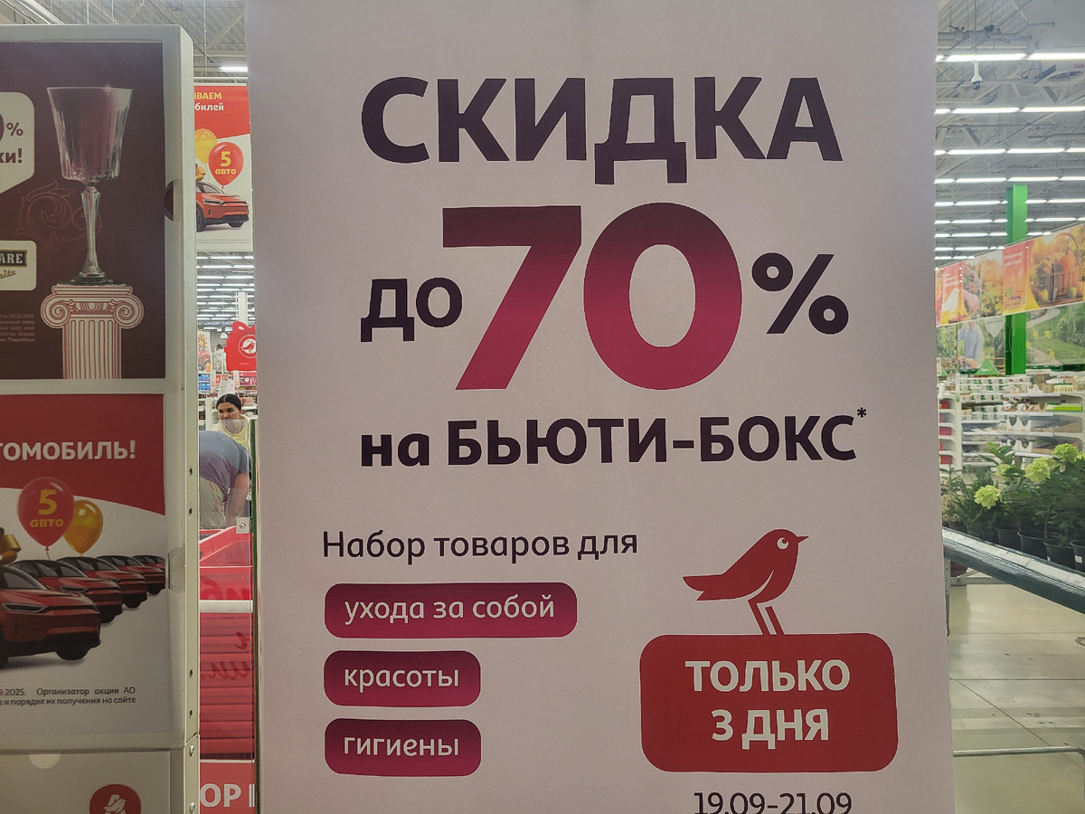 Обычно я наведываюсь в Ашан за разными хозяйственными прибамбасами для дачи, кошачьим кормом и товарами для дома. В отдел косметики заглядываю чисто для галочки и редко что-то там себе покупаю. Но вчера из комментария в тг узнала об акции "скидка до -70%" на сюрпрайз-боксы (наполнение не раскрывается) и решила заскочить в последний вагон (период её действия с 19.09 по 21.09). На самом деле поехала я в Ашан не ради бокса, а за торфом для туй (активирован режим "сентябрьская дачница" ). Ближайший к месту моего обитания магазин находится далековато и никакие боксы не стоят потери драгоценного времени в пробках с грузовиками ( беда моего города). Вот только грунт и прочие полезности сельхоз назначения не являются темой моего канала, поэтому сегодня предлагаю посмотреть полки с косметикой в этом магазине всего и для всех. Обсудим ассортимент, а в конце оценим и наполнение бьюти-бокса, который я урвала.