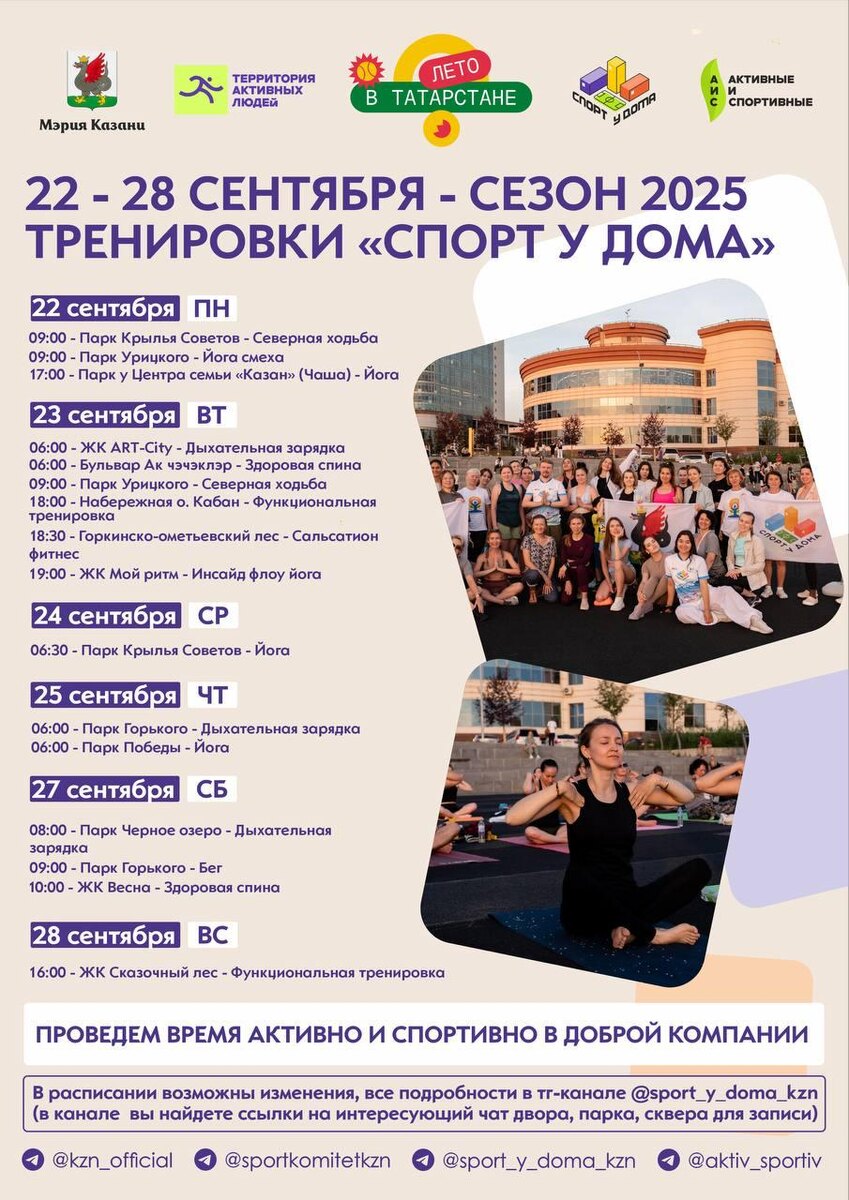 ☀️💪 Мэрия Казани поделилась расписанием бесплатных тренировок в рамках проекта «Лето в Татарстане
