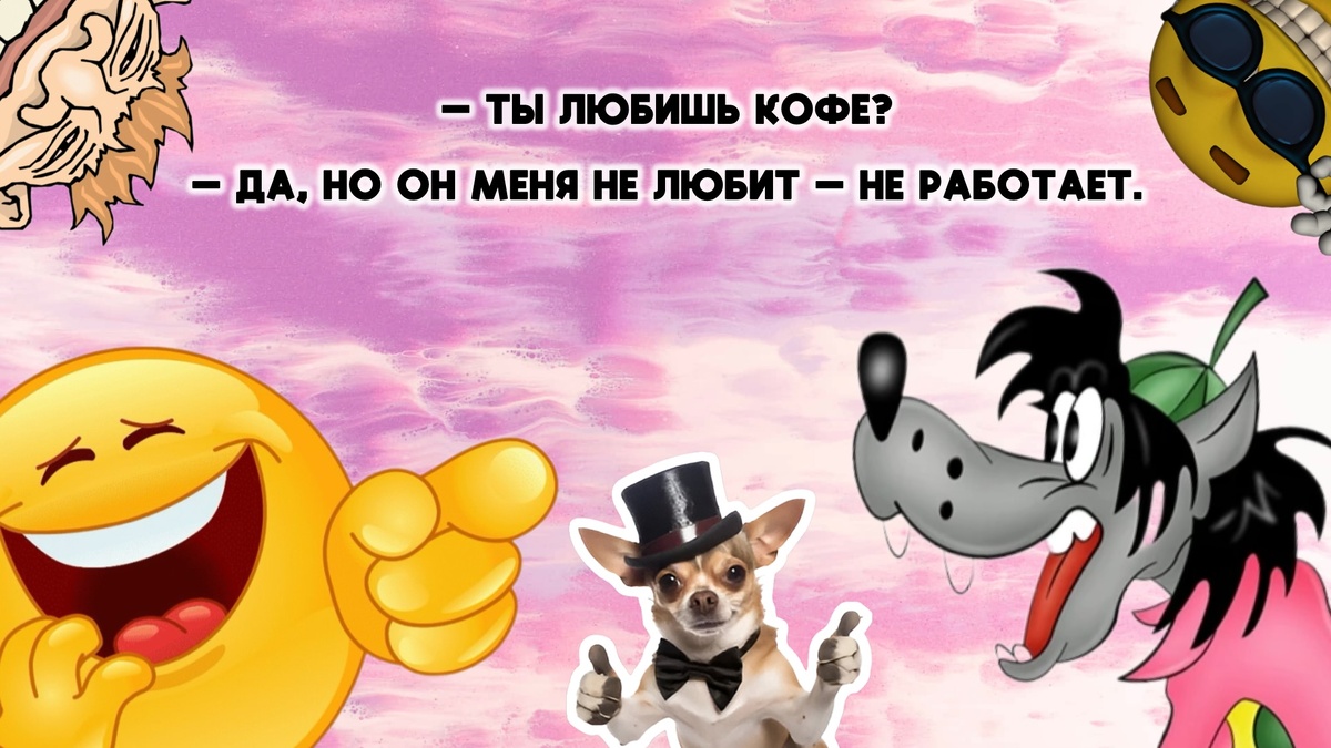 1 — Почему ты всегда такой веселый? — Я просто притворяюсь. Это мое хобби. 2 — Что самое сложное в жизни? — Решить, какой сериал начать смотреть. Все остальное — ерунда. 3 — Я экономлю на психологе. — Как? — Рассказываю все свои проблемы кактусу. — И? — Он молчит, но колется. Справедливо. 4 — Почему ты все время молчишь? — Я участвую в конкурсе на самого терпеливого человека. Приз — пожизненное молчание. 5 — Что сказал один палец другому? — Мы с тобой одной руки. — Второй ответил: — Да, но ты большой, а я — указательный. Несправедливо. 6 — Я попробовал заняться йогой. — И? — Застрял в позе "собаки мордой вниз". Теперь жду, когда придет кошка. 7 — Почему ты не идешь к парикмахеру? — Потому что мые волосы и так в шоке от моей жизни. 8 — Что самое странное в людях? — То, что они платят за воду в бутылках, а потом бегают за бесплатной водой на фонтане. 9 — Почему ты плачешь? — Я смотрел, как муравей тащил крошку. — Это так трогательно? — Нет, он ее уронил. Я понял его боль. 10 — Я