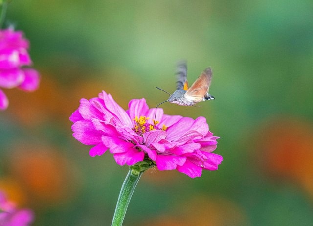 В Курске сфотографировали четырехсантиметрового бражника «Колибри» попал на камеру фотографу Алексею Сивакову. Как рассказал автор, маленького и шустрого бражника трудно поймать в объектив. Затрачено время, чтобы его запечатлеть. На фото виден даже хоботок бабочки. Бражника еще называют «колибри» за некоторое сходство. Бабочки бражники преимущественно сумеречные и ночные. Они отличаются способностью зависать в воздухе над цветком, добывая нектар с помощью длинного хоботка. - Маленький и шустрый, долго на месте не задерживался, перемещался стремительно, ну и размер - сантиметра четыре. Трудная мишень, - написал в комментарии к фото Алексей Сиваков.