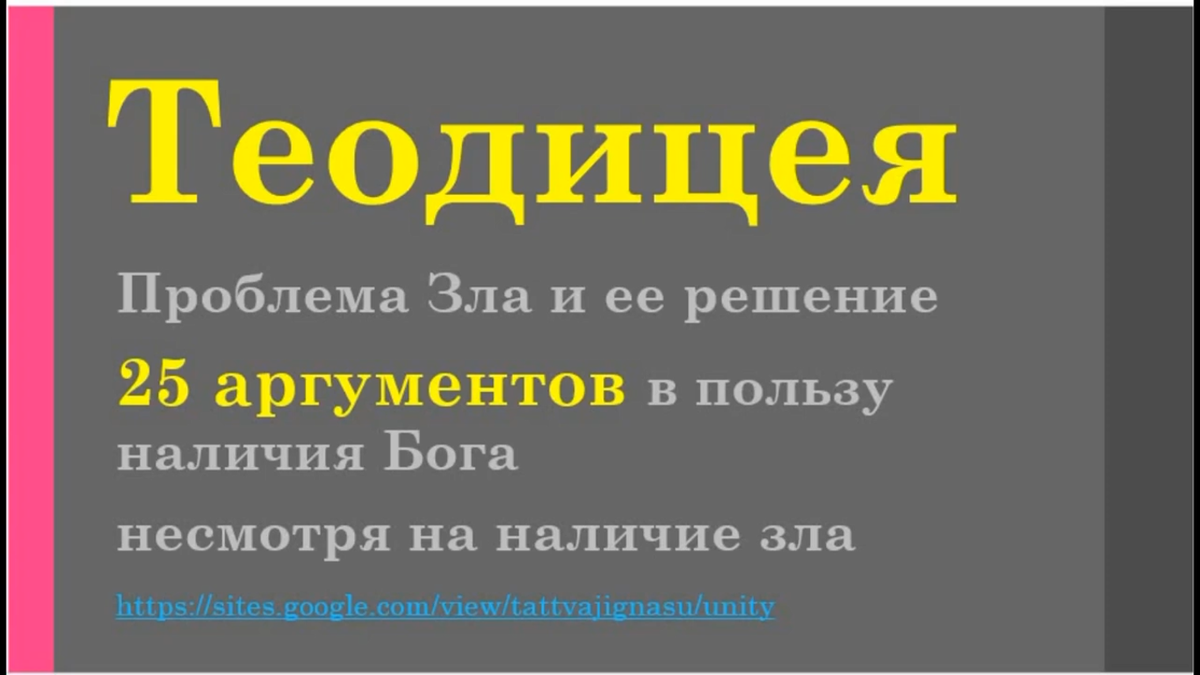 На этом мы заканчиваем наш урок, посвященный 25 аргументам в пользу Бога. Напоминаю еще раз, мы использовали материалы урока Свами Сарваприянанада, который цитировал книгу “The Problem of Evil and Indian Thought”, Arthur Herman[3]. Герман в этой книге выделяет двадцать одно решение проблемы зла. Мы привели это 21 решение, и для полной картины с помощью ИИ нашли еще несколько аргументов, в итоге получилось 25 аргументов в пользу Бога несмотря на наличие зла.