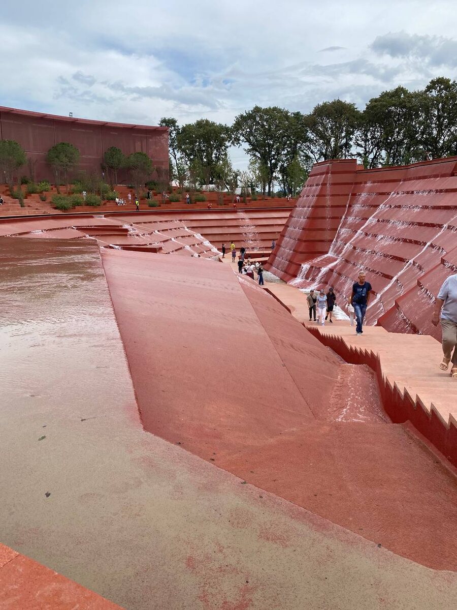 Еще одной локацией пополнился самый красивый парк России. Конструкция, напоминающая очертаниями и цветом красно-охристые уступы Гран-каньона открылась 16 сентября 2025 года в парке Галицкого (официально парк называется "Краснодар", но только не для жителей города, в знак уважения к создателю, вдохновителю идею парка, а главное - его финансовой реализации, парк называют именем Сергея Николаевича Галицкого). По ощущениям человека, посетившего это место, никакой идеи подражательности в локации нет. Каньон - слово, которое сразу прилипло к локации - это стены, с которых стекает вода, но сравнение сугубо внешнее. Идеей каньона создатели новой зоны парка вдохновились принципиально с другой целью. Это "Амфитеатр воды", по задумке. Натягивать сову на глобус и искать общее с Гран-каньоном - это все-равно что куличики в песочнице считать средневековым замком. Главное же в этой локации - музыка и танцы воды. Вода журчит, бурлит, каплет, плюхается, кипит. И все это разные регистры звука, наст