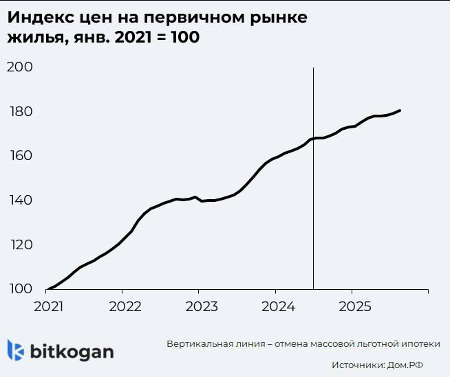 ▫️Удорожание жилья произошло из-за роста спроса. Если в мае-июне продавали новостроек на 1,7 млн м², то в июле-августе по 2,0–2,1 млн. Во многом это благодаря оживлению ипотеки: в августе выдали 85 тыс. после 77 тыс. в июле.