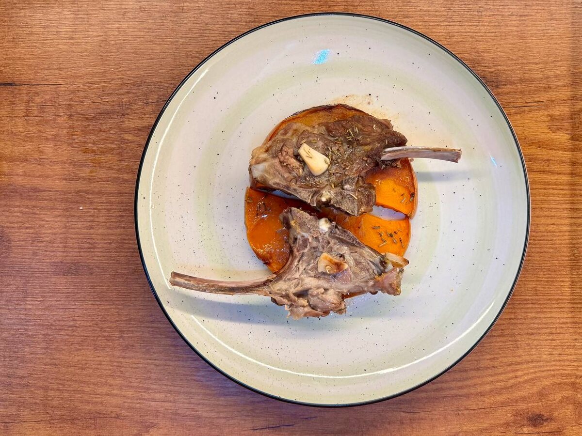 Баранина с розмарином, запечённая на тыкве Очень просто. Ингредиенты: 1️⃣ Баранина (каре) 2️⃣ Тыква баттернат - 800 гр 3️⃣ Розмарин, соль, перец 4️⃣ чеснок - несколько зубчиков Приготовление: 1. Зачистить «пистолетики» по ребрышкам, сместив мякоть к основному куску. 2. Тыкву нарезать кружками (полукругом). Толщина -2 см 3. Выложить тыкву на противень, посолить, поперчить, присыпать розмарином 4. Сверху выложить кусочки мяса. На них кусочки чеснока. 5. Запечь в режиме конвекции, при 180 градусах, 40-50 минут Ангела за трапезой! Ваш ПП - Православное Питание - канал о пище, не только телесной, но и духовной Как искать рецепты? Жми, читай, выбирай ⏬️ Поиск рецептов на канале #скоромное #мясо #баранина #тыква #духовка #просто