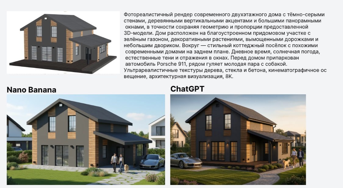 ПРОТЕСТИРОВАЛ 7 НЕЙРОСЕТЕЙ - ГОТОВЛЮ МАТЕРИАЛ К ПРАКТИКУМУ КОНФЕРЕНЦИИ Взял модель дома, и взял один промт. И загнал в 7 нейросетей. Как видите не все сделали то что надо, но это не значит что каждый из них плохой. Просто каждый хорош в разных моментах и свои возможности. А что можно делать в этих нейросетях, и как делать там реальные проекты, и какие 50+ секретных возможностей есть в этих нейросетях, подробно с примерами и промтами, можно узнать на конференции по нейродизайну 27-28 сентября. Если вы еще не с нами то быстрее залетайте. ➡️ @vebinarneurodesignbot Если наберем 50🔥 то покажу пример также с интерьером