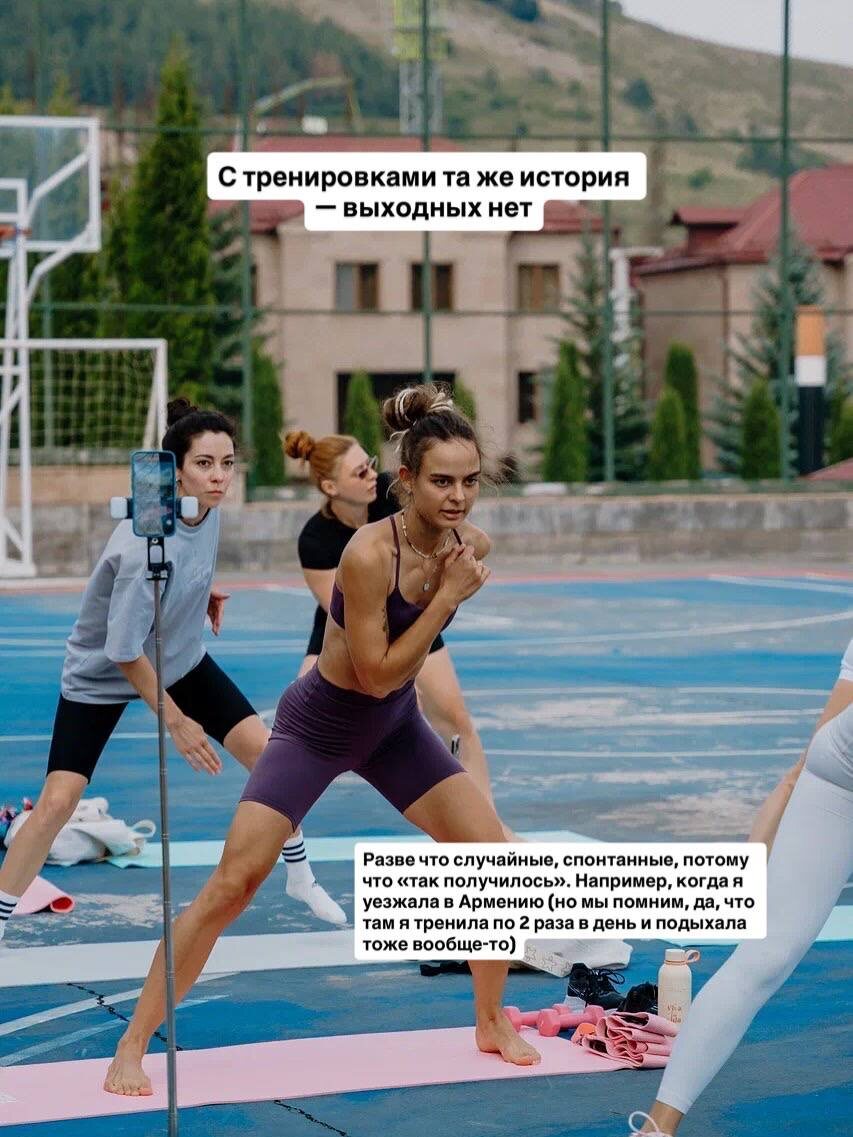 В комментариях спросили, есть ли у меня выходные от тренировок. Где я занимаюсь, рассказала здесь. А я, честно, не знаю, что это за зверь — «выходные». Ну то есть в принципе. У меня и по работе график вообще не нормированный: я на связи и по выходным, и в праздники, часто работаю вечерами, а то и ночью. Опять же, никого не призываю повторять мой режим. Но вы спрашиваете: Катя, а как у тебя? Вот я и отвечаю. По скринам моего календаря на платформе можно вычислить: Второе. Чёткая дисциплина — реально залог моего успеха. Если бы я делала всё расхлябанно, без структуры и расписания, всё пошло бы по другому, и ничего бы не вышло. Ну серьёзно. Я себя знаю. На скринах тёмные квадратики — это дни с тренировками, а точки под числами — количество тренировок в день. Приложила скрин рандомного дня с тремя тренировками. Вот.