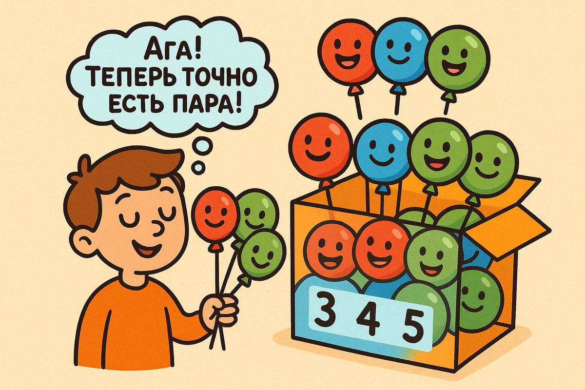Ты закрываешь глаза и наугад вытаскиваешь шарики по одному. Вопрос: