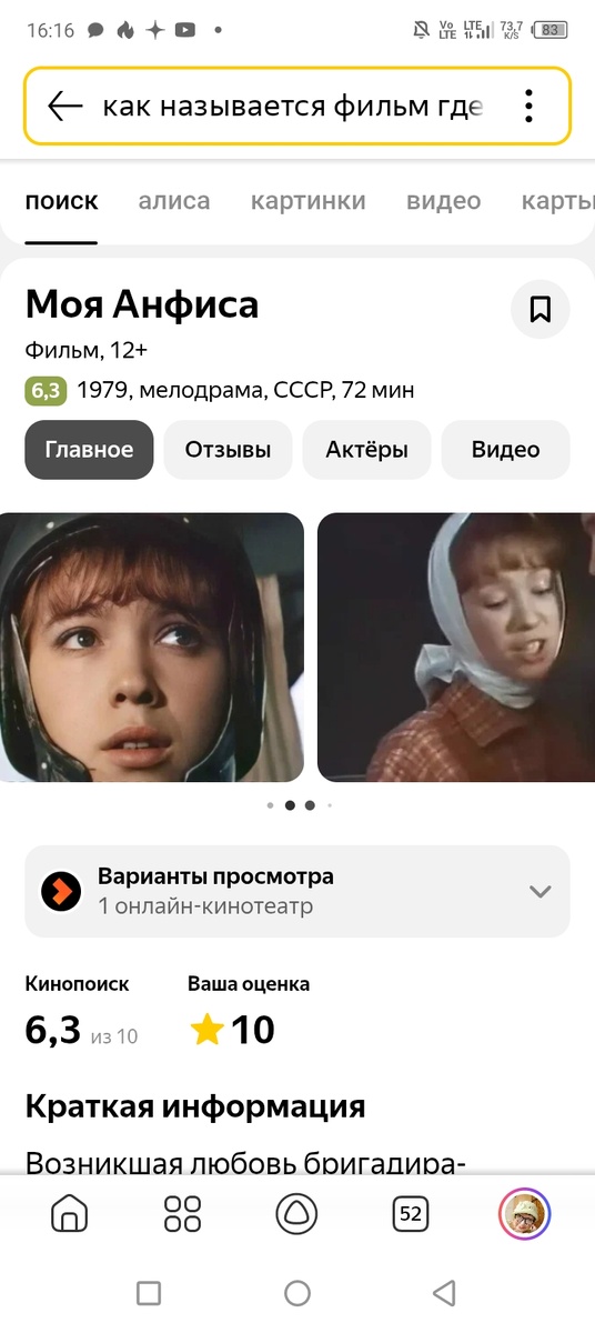 Кинишко посмотрели, советское, давнее.В главной роли Марина Левтова и Каюров - младший.