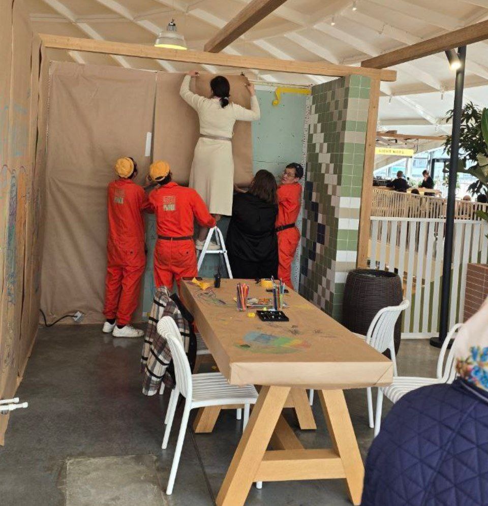 Россия. Мы не ищем лёгких путей, мы ищем коллективный опыт. Сценарий классический: – Начальница 20 минут объясняет, как клеить. – Команда кивает, записывает, делает умный вид. – Через минуту выясняется, что никто кроме неё не хочет это сделать. – Ресурсы срочно перераспределяются в отдел ИБД (Имитация Бурной Деятельности). И понеслась: - Один держит стремянку - Второй следит за ровностью полотна. - Третий даёт советы с земли. - Четвёртый просто стоит, но создаёт ощущение, что проект под контролем. В итоге командная работа. Пять человек клеили обои. Менеджмент по-русски - главное не результат, а чтобы вокруг было шумно, людно и с ощущением, что без каждого было бы невозможно. Кстати, а сколько нужно электриков чтобы врутить одну лампочку? ( думали это шутка...) Казань. Сентябрь 2025. Работники делают работу.